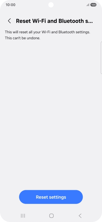 Please note that all saved Wi-Fi and Bluetooth connections and passwords, you've created, are deleted.