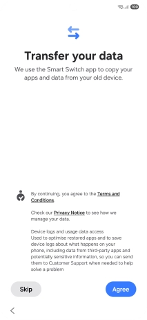 Press the required setting and follow the instructions on the screen to transfer the content from another phone.