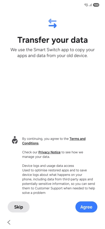 You can transfer the contents of another phone to your phone when it's activated for the first time and after a factory reset. When this screen is displayed, your phone is ready to transfer content from another phone.