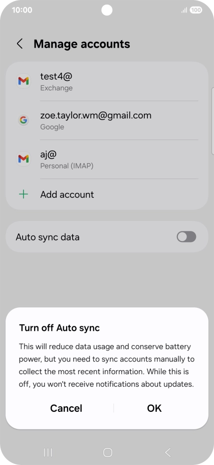 Press the indicator next to "Auto sync data" to turn the function on or off.