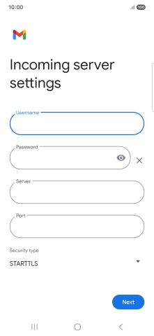 Press the field below "Server" and key in the name of your email provider's incoming server.