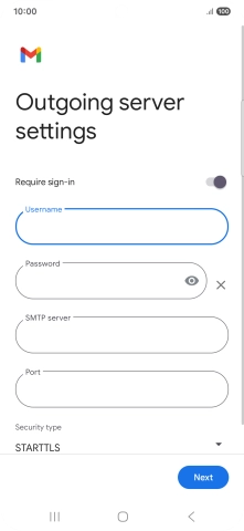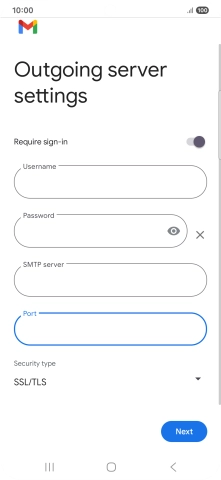 Press the field below "Username" and key in the username for your email the email provider's outgoing server.