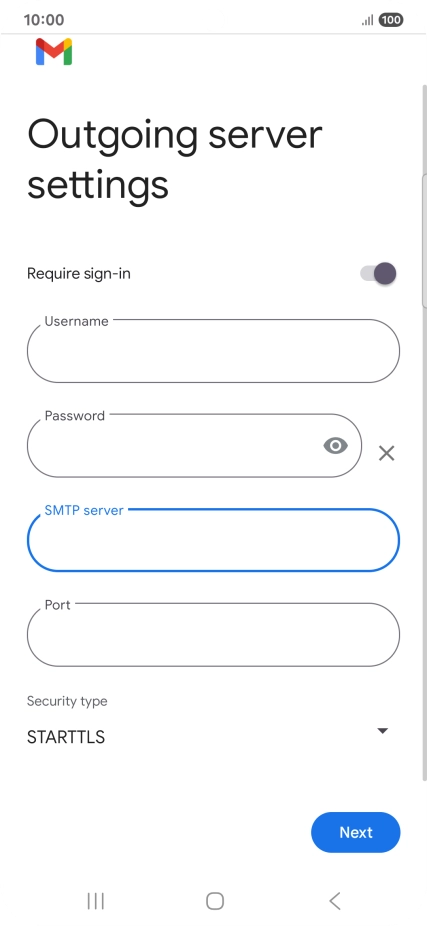 Press the field below "SMTP server" and key in the name of your email provider's outgoing server.