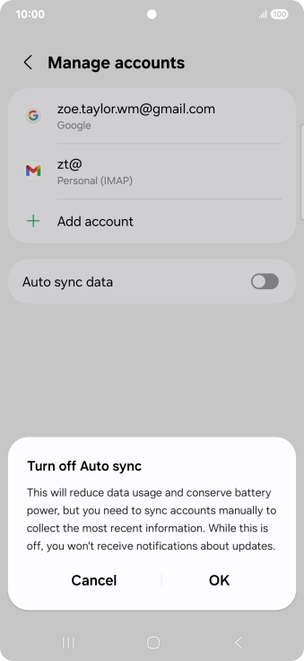 Press the indicator next to "Auto sync data" to turn the function on or off.