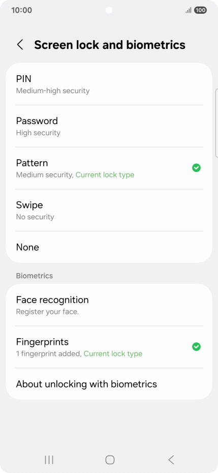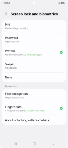 Press Screen lock and biometrics and key in the additional phone lock code you created earlier.