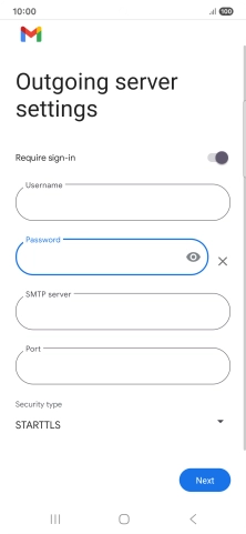 Press the field below "Password" and key in the password for your email provider's outgoing server.