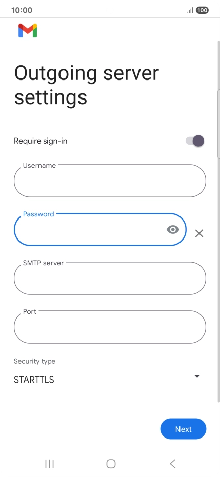 Press the field below "Password" and key in the password for your email account.