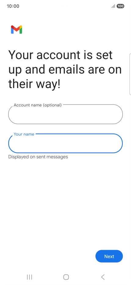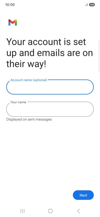 If this screen is displayed, you email account has been recognised and set up automatically. Follow the instructions on the screen to key in more information and finish setting up your phone.