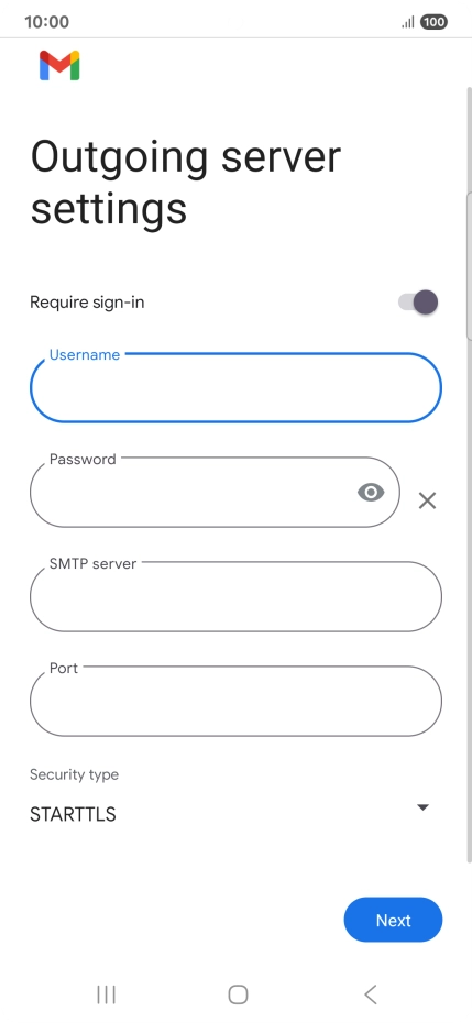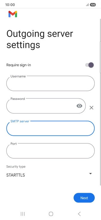 Press the field below "SMTP server" and key in the name of your email provider's outgoing server.