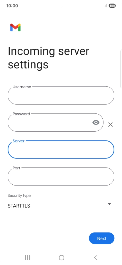 Press the field below "Server" and key in the name of your email provider's incoming server.