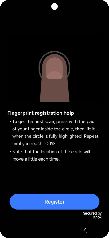 Follow the instructions on the screen to create the phone lock code using your fingerprint.