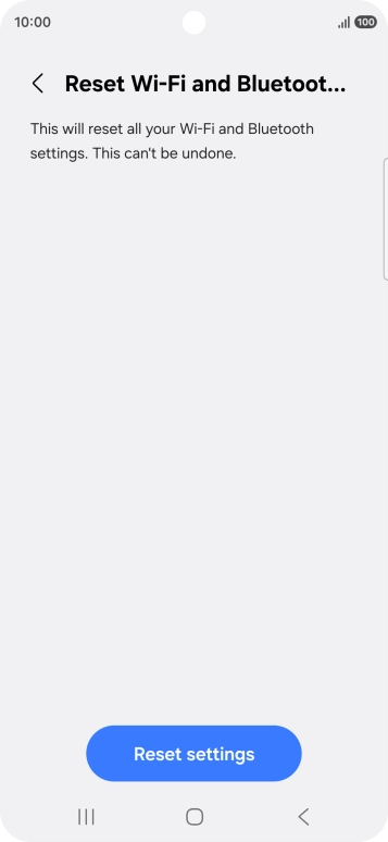 Please note that all saved Wi-Fi and Bluetooth connections and passwords, you've created, are deleted.