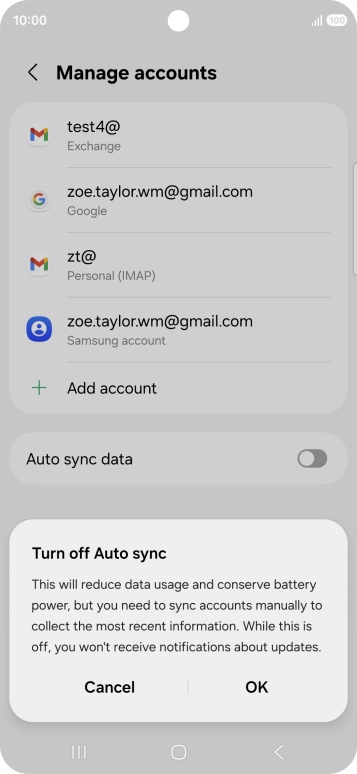 Press the indicator next to "Auto sync data" to turn the function on or off.