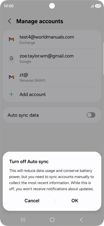 Press the indicator next to "Auto sync data" to turn the function on or off.