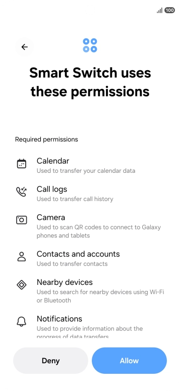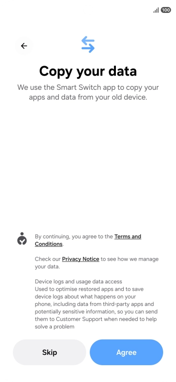 You can transfer the contents of another phone to your phone when it's activated for the first time and after a factory reset. When this screen is displayed, your phone is ready to transfer content from another phone.