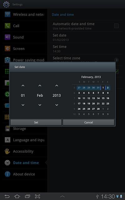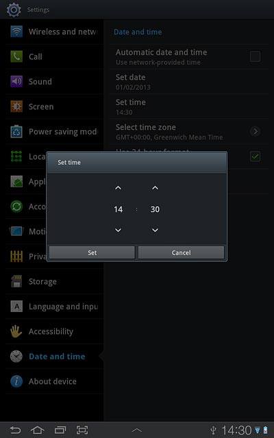 Press arrow up or arrow down next to hours and minutes to set the time.