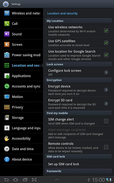 Turn use of lock code on or off