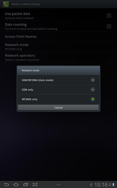 Press GSM/WCDMA (Auto mode), GSM only or WCDMA only.