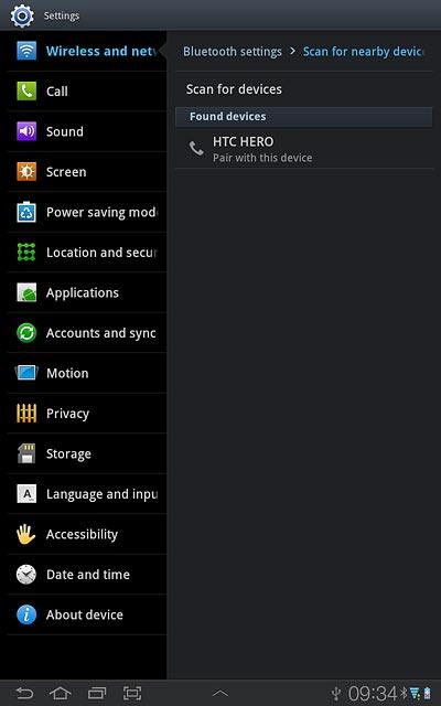 Your device now searches for devices and a list of Bluetooth devices within range is displayed.