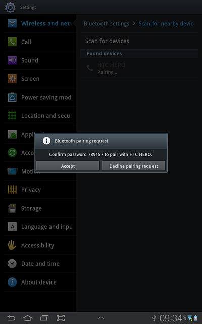 Check that the same access code is displayed on both devices and press Accept.
