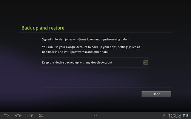 Press Keep this device backed up with my Google Account next to Keep this device backed up with my Google Account to turn the function on or off.