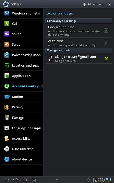 Press Accounts and sync.
