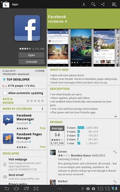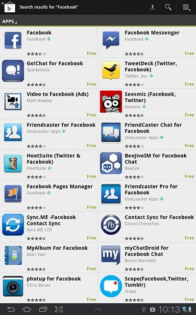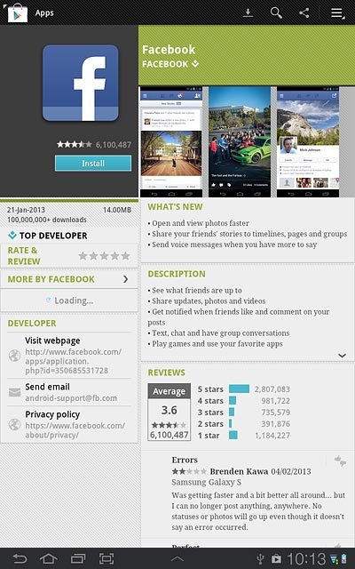 Facebook is a social network which enables you to communicate with your friends. You can upload pictures and video clips and you can create groups. You can use Facebook using an application on your device. Before you can use the application, it needs to be downloaded and installed. Follow these instructions to install Facebook.