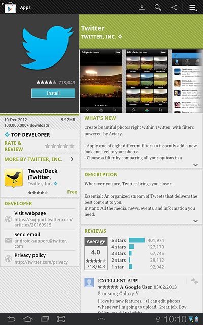 Twitter is a social network allowing you to write your own and read others' status updates in messages not exceeding 140 characters. The status updates are displayed on your profile and are received by people who follow you. You decide who you want to receive status updates from. Before you can use the application, it needs to be downloaded and installed. Follow these instructions to install Twitter.