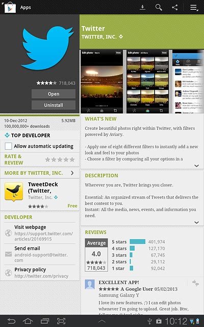 When the installation is complete, you can use Twitter on your device. Click here for information on how to use Twitter.