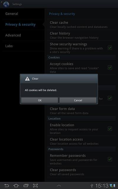 Press Clear all cookie data.