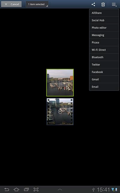 Press and hold the required picture or the required video clip until it's displayed in green.