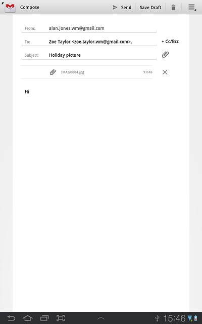 An email message containing the picture or video clip is created.