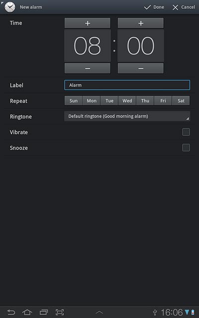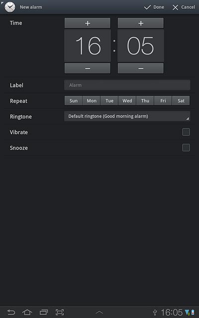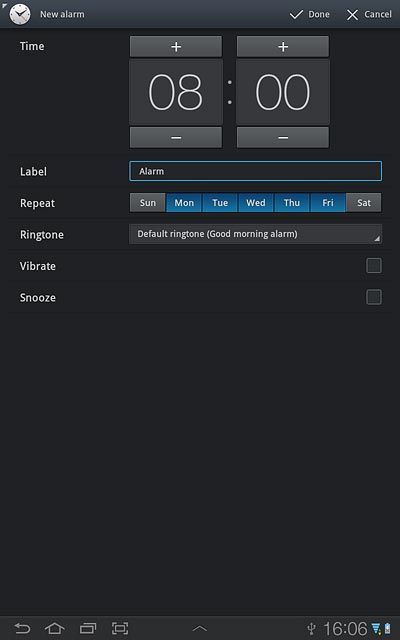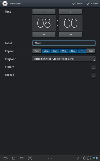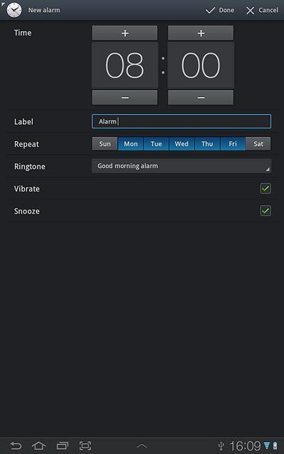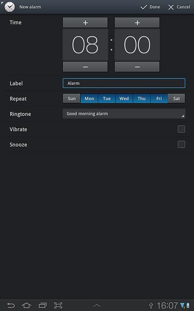 Press the required days next to Repeat.