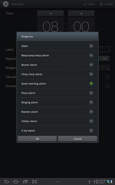 Once you've found an alarm tone you like, press OK.