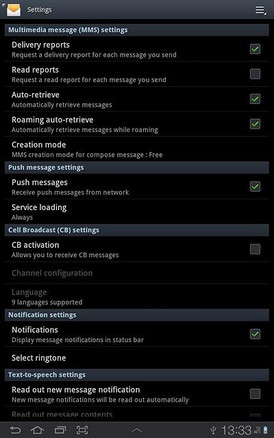 Press Delivery reports below Multimedia message (MMS) settings to turn the function on or off.
