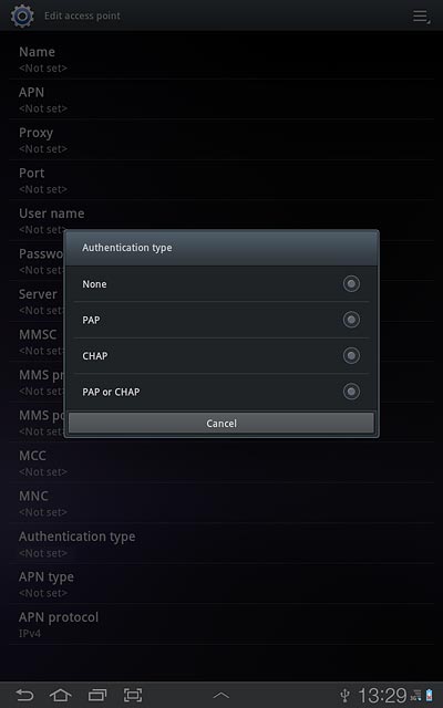 Press Authentication type.