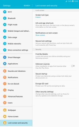 The lock code protects the contents of your tablet from unauthorised use. When the lock code is turned on, it needs to be used every time you turn on your tablet and when it has been in sleep mode.