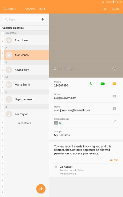 You can save your contacts in your tablet's address book. You can save additional information to a contact such as email address and personal ring tone.