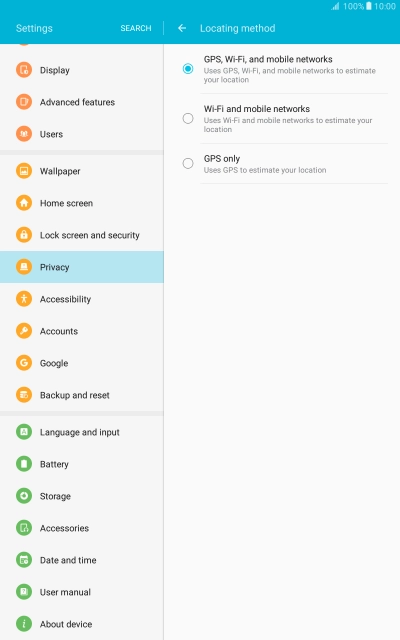 If you select Wi-Fi and mobile networks, your tablet can find your approximate position using the mobile network and nearby Wi-Fi networks.
