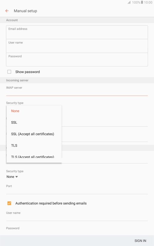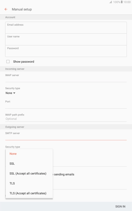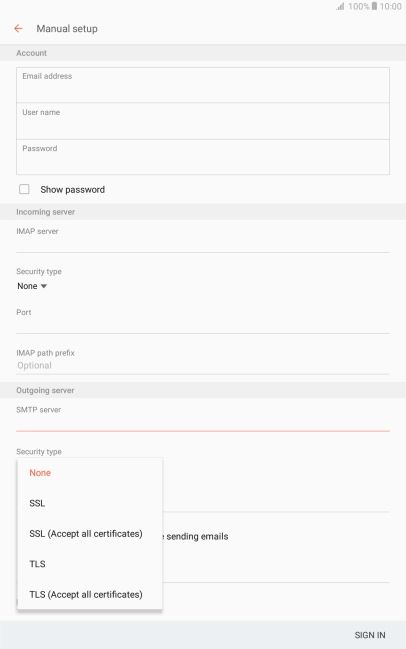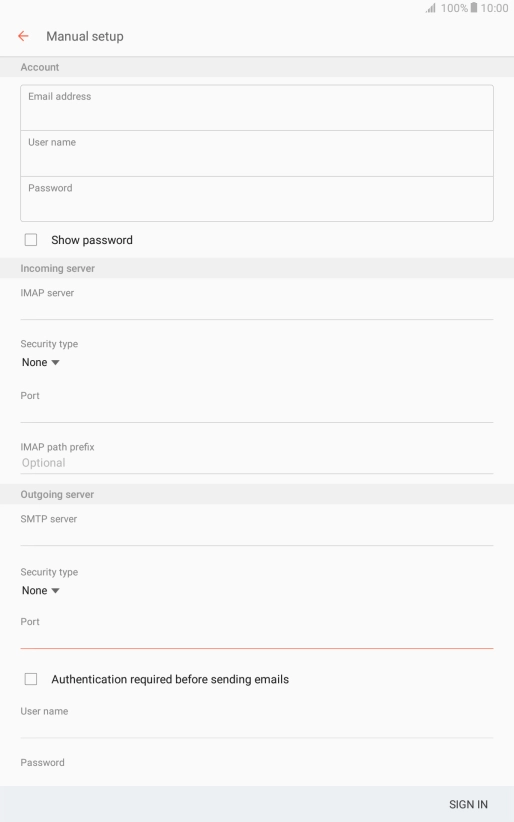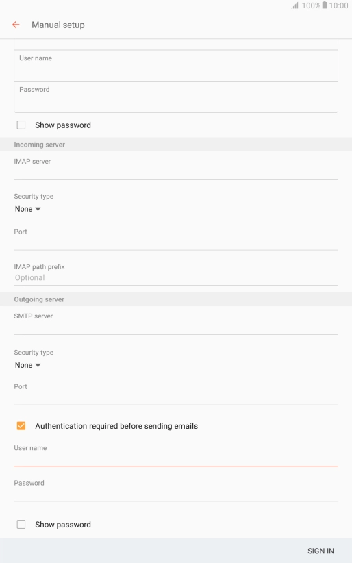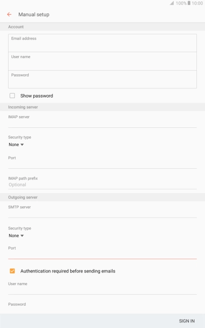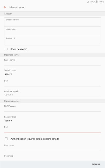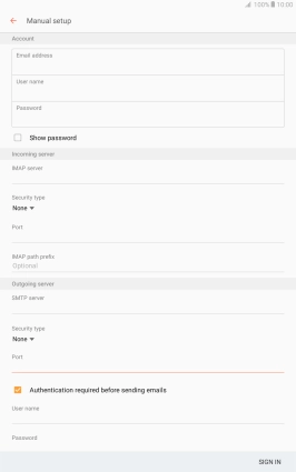 Press the field below "IMAP server" and key in the name of your email provider's incoming server.