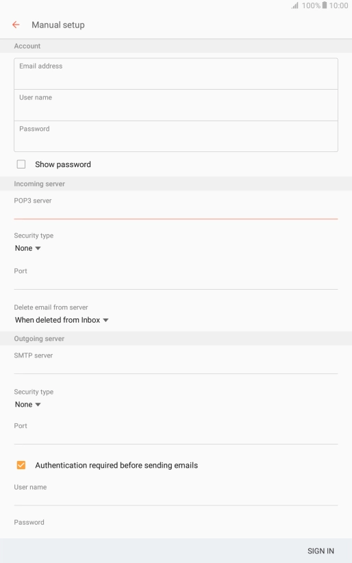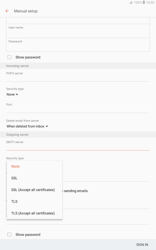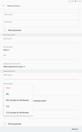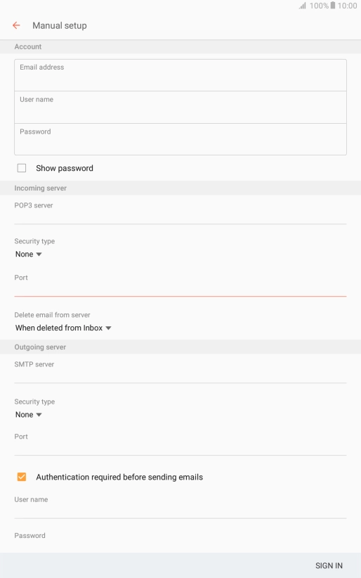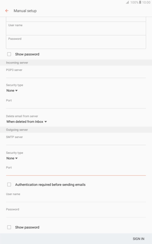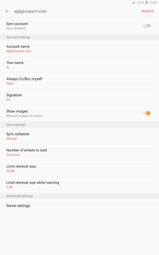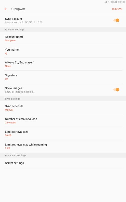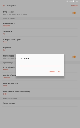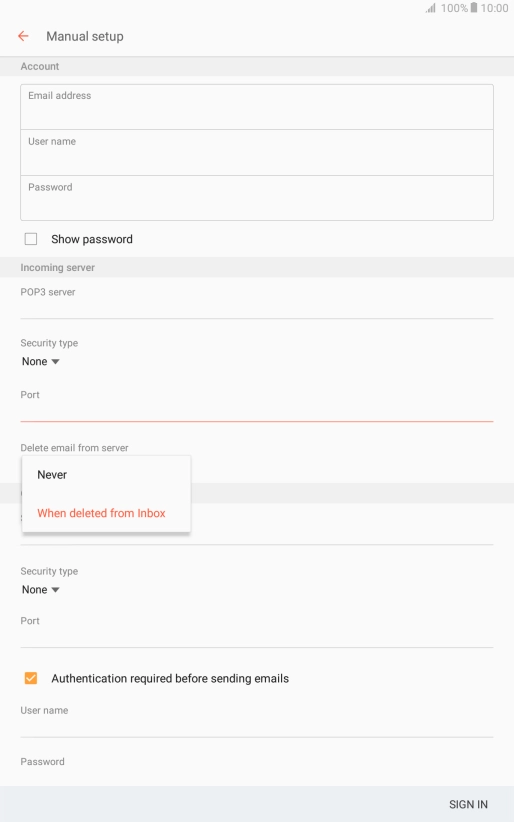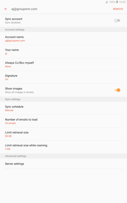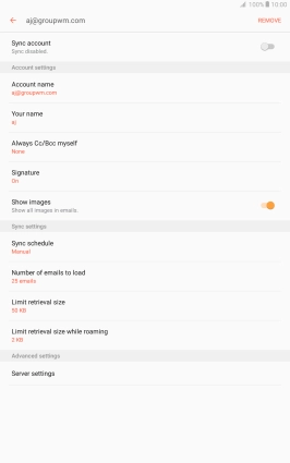 Press When deleted from Inbox to delete email messages on the server when you delete them on your tablet.