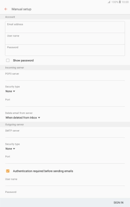If this screen is displayed, your email account has been recognised and set up automatically. Follow the instructions on the screen to key in more information and finish setting up your tablet.