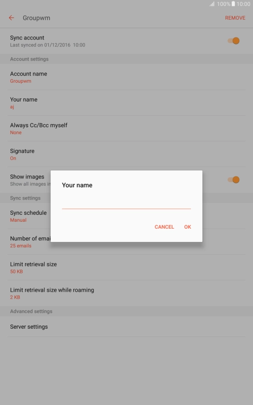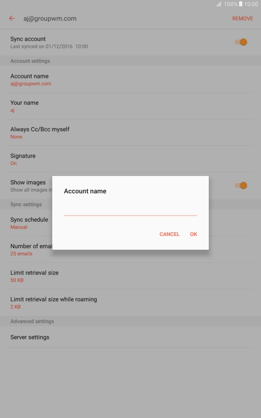 Key in the required name for the email account and press OK.