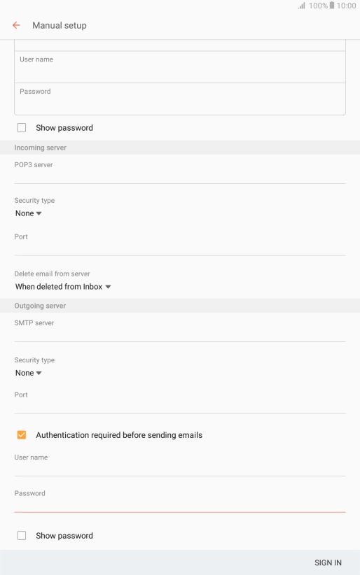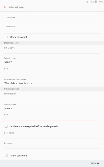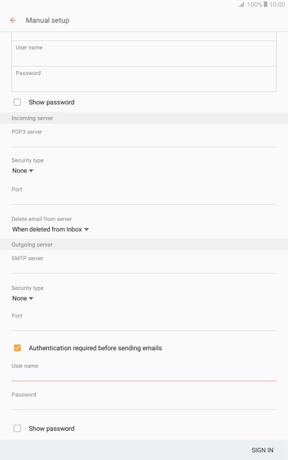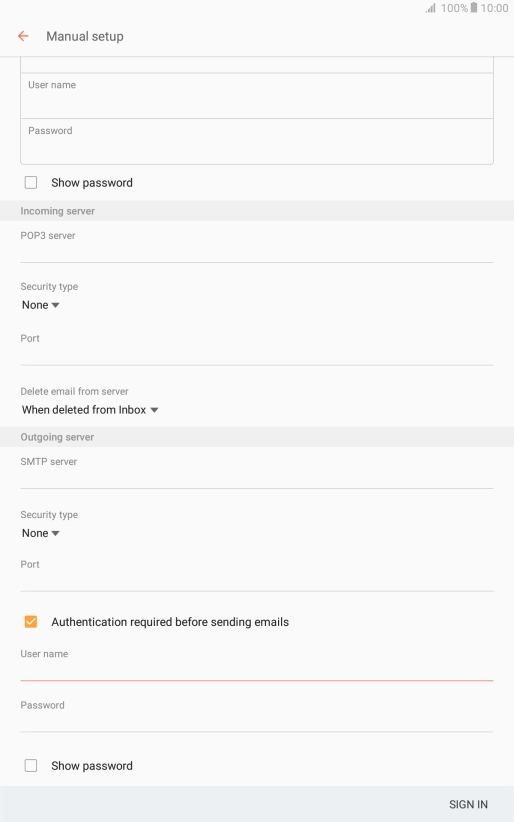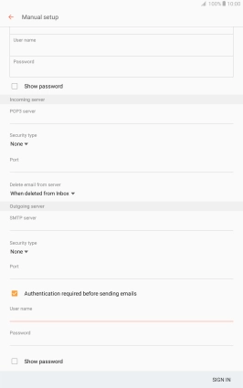 Press User name and key in the username for your email account.