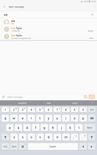 Press the search field and key in the first letters of the recipient's name.