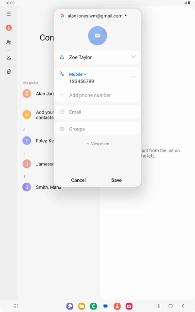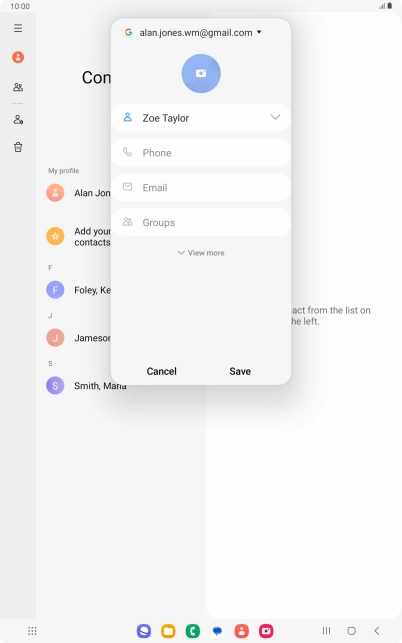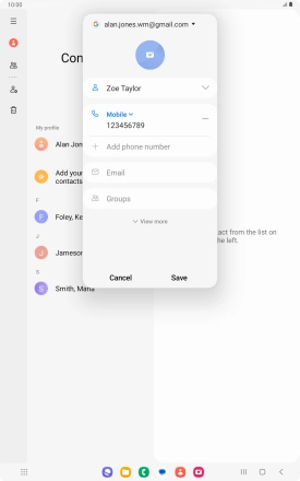 You can save your contacts to your Google account and synchronise them between all your Android devices. You can save additional information to a contact such as email address and date of birth. To save a new contact to your Google account, you need to activate your Google account on your tablet.