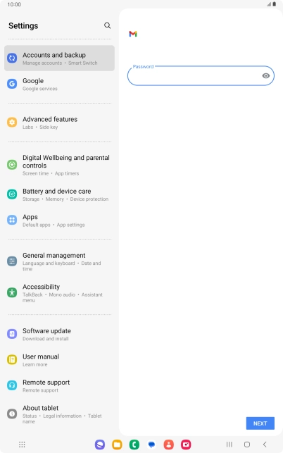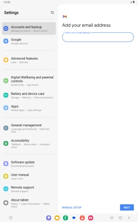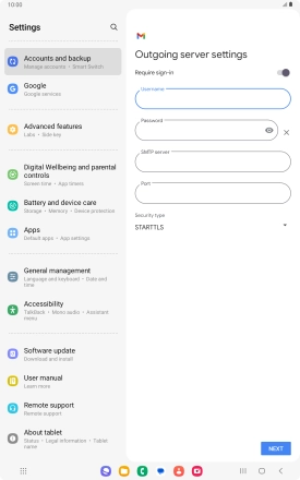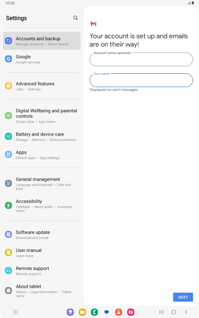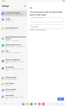 If this screen is displayed, you email account has been recognised and set up automatically. Follow the instructions on the screen to key in more information and finish setting up your tablet.