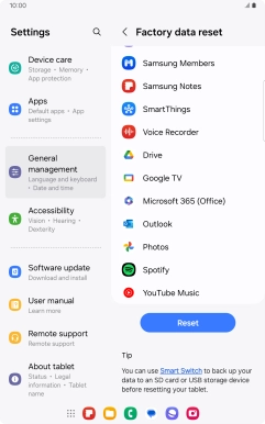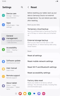 If your tablet gets slow or doesn't work as it usually does, it may help to restore the factory default settings. All settings and configurations you've made on your tablet are deleted.