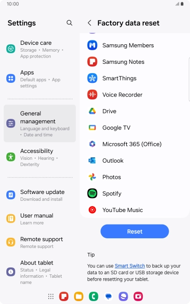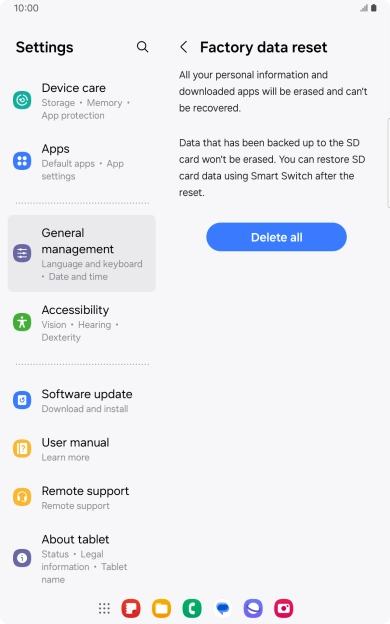 Press Delete all. Wait a moment while the factory default settings are restored. Follow the instructions on the screen to set up your tablet and prepare it for use.