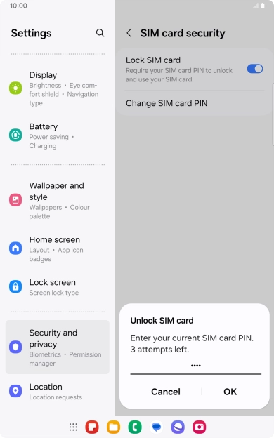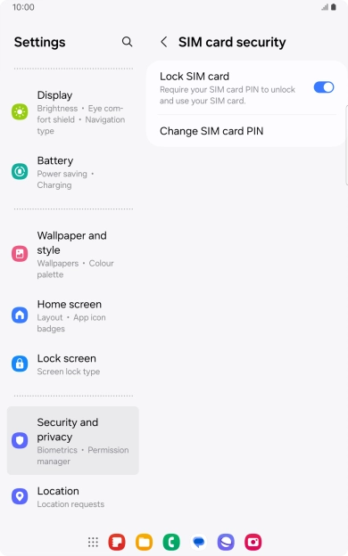 Press the indicator next to "Lock SIM card" to turn the function on or off.